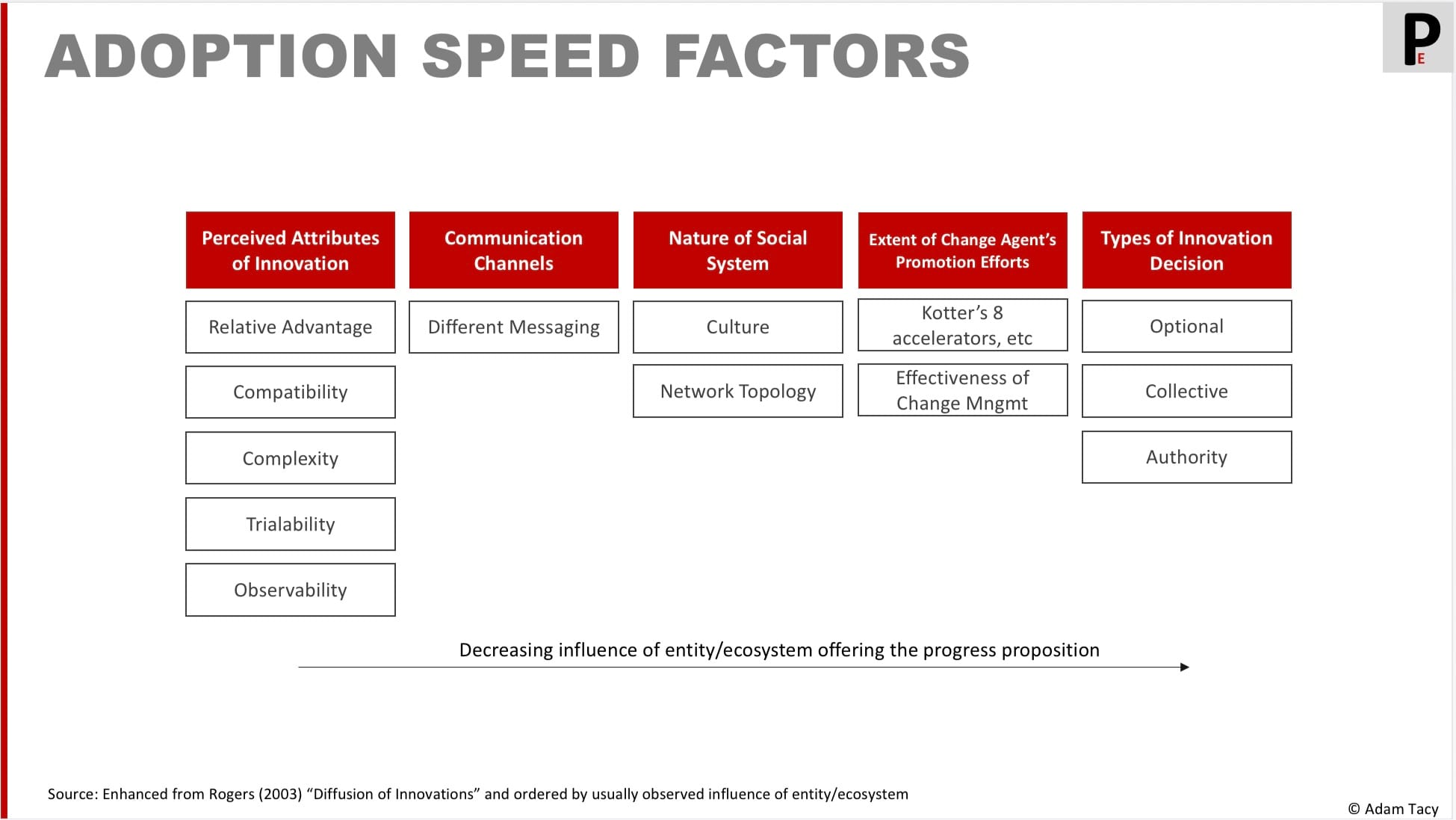 Rogers’ research gives us many insights, two of which we leverage as this progress hurdle. Namely that there are: