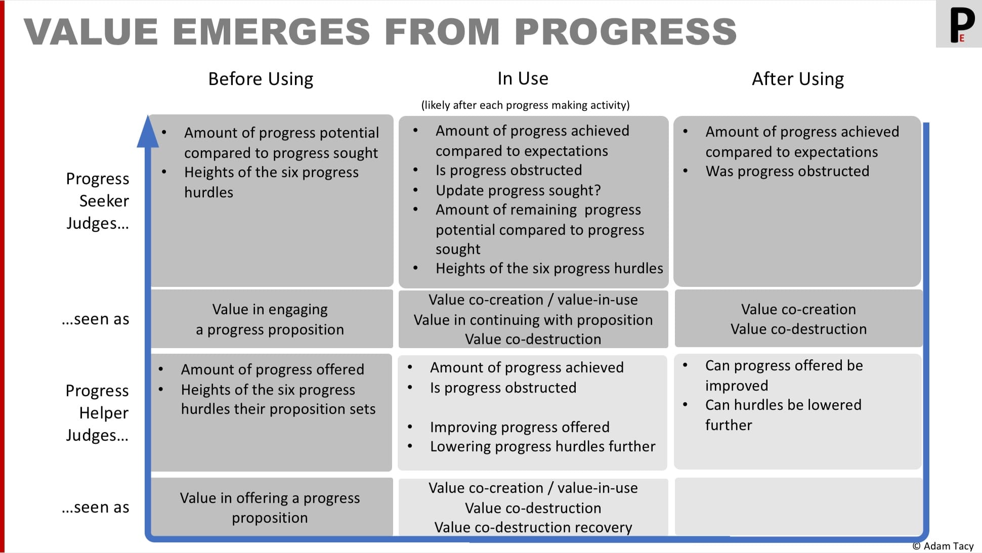 When a seeker engages a progress proposition we use the more complicated view of value-in-use which also takes into account a progress helper’s perspective.
