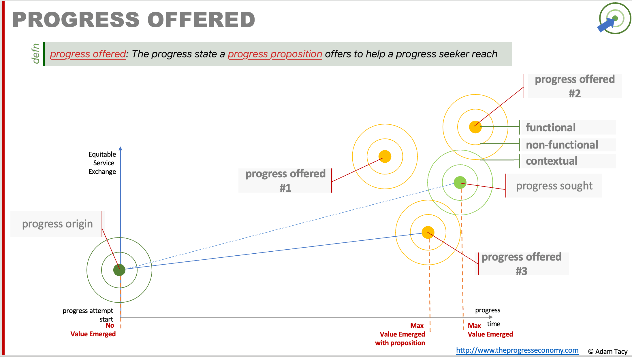 Progress offered is the progress state – capturing functional, non-functional and contextual aspects – a progress proposition offers to help a seeker reach.