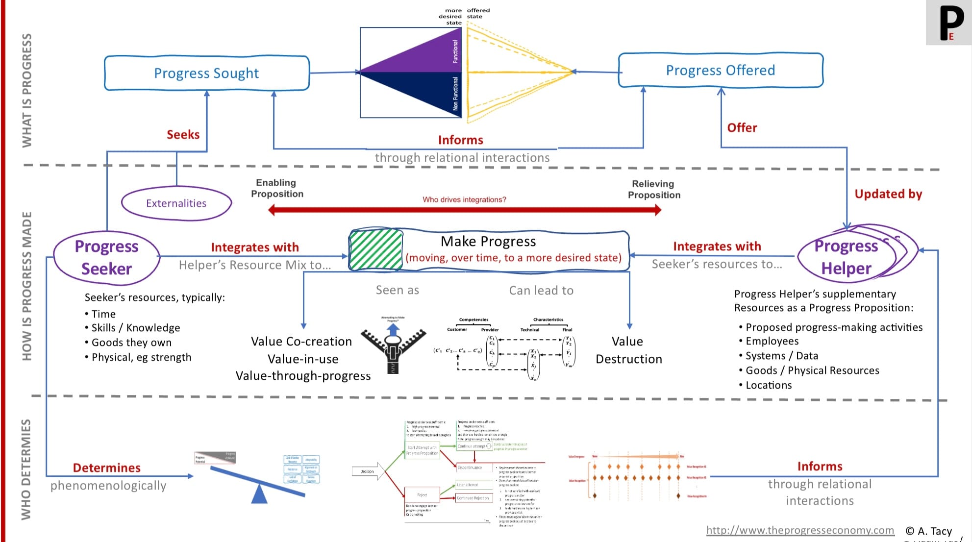- Progress zip – high level view of how progress is made (value in use, co-creation of value, temporary coming together of resources)