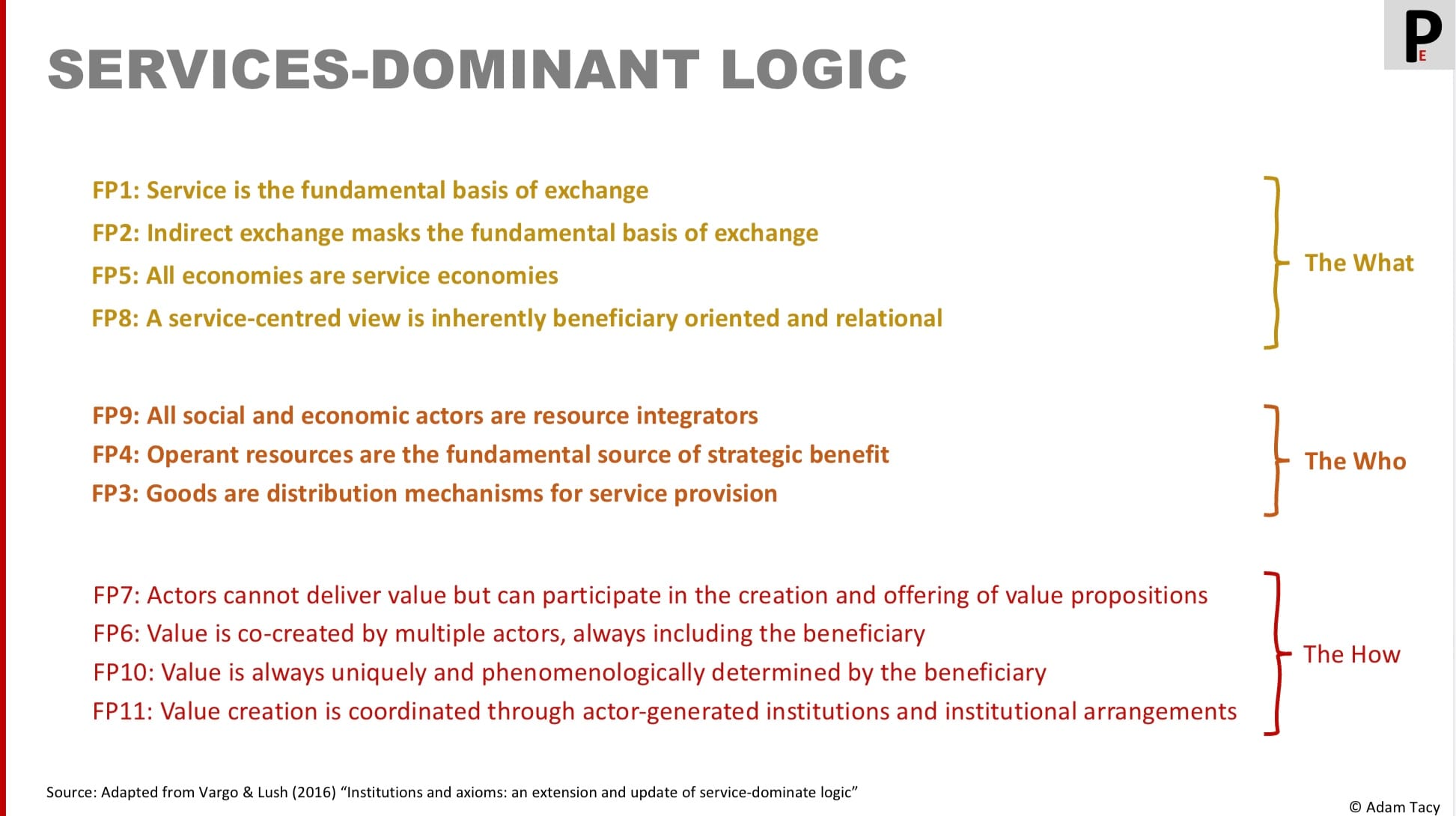 Vargo & Lush’s service-dominant logic unlocks our whole thinking. It emerged from the approach of seeing value not as embedded in an output, but rather value is created in process of creating the outcome. And that the view of service in relation to goods is not as terrible as classic marketing would lead you to believe.