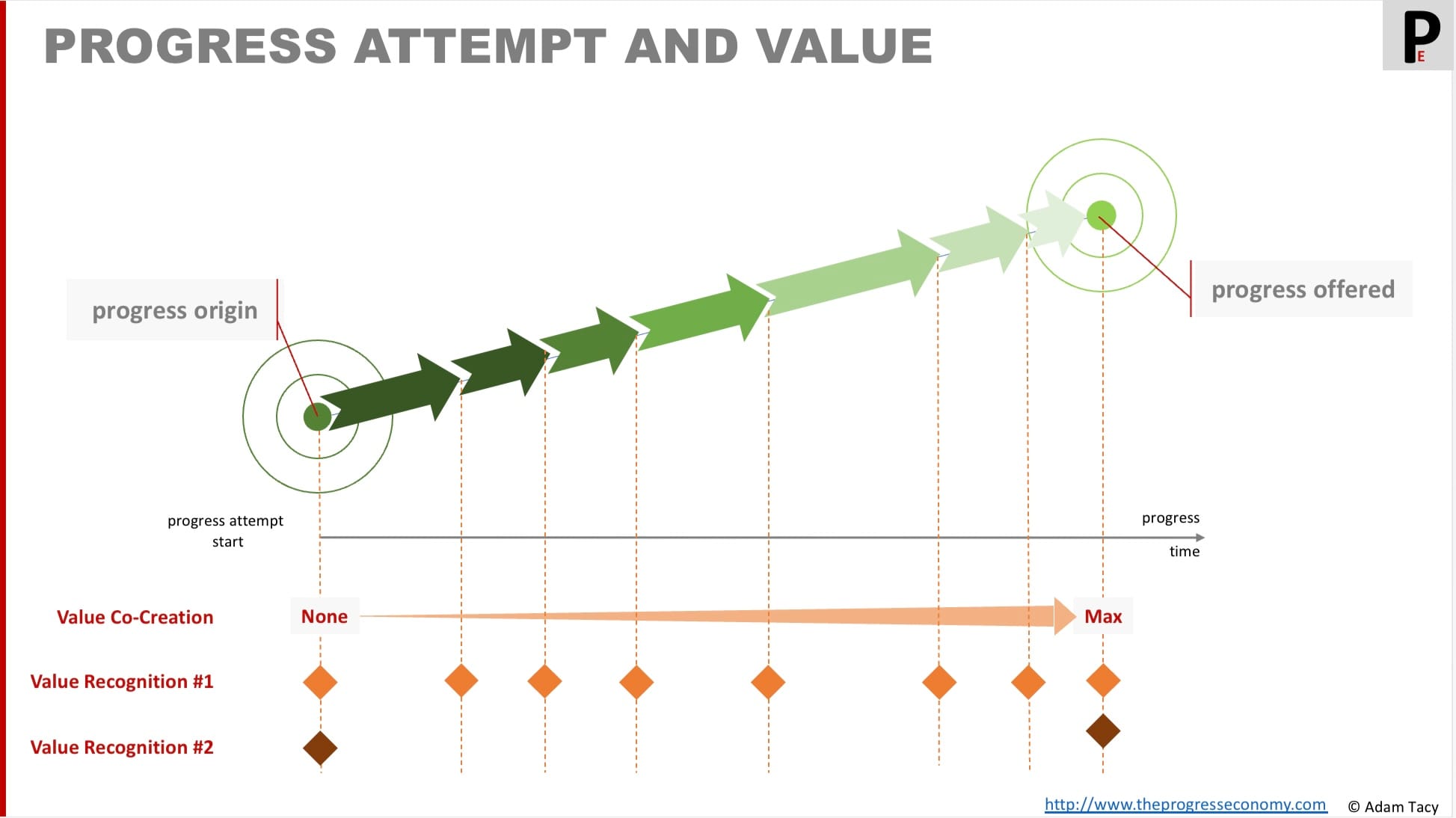 Value, then, incrementally emerges as the seeker moves over time between their progress origin and progress sought. There is value-through-progress.