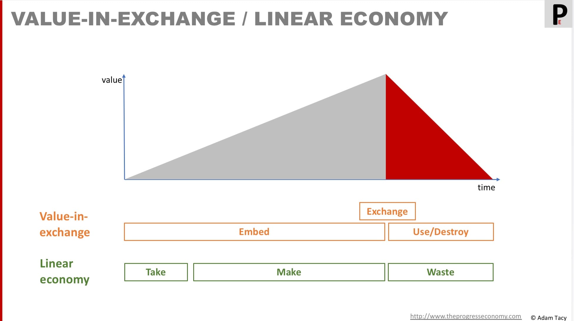 The value-in-exchange model aligns with a linear, “take-make-waste” economy. It encourages manufacturers to design products that degrade quickly, incentivising more exchanges.